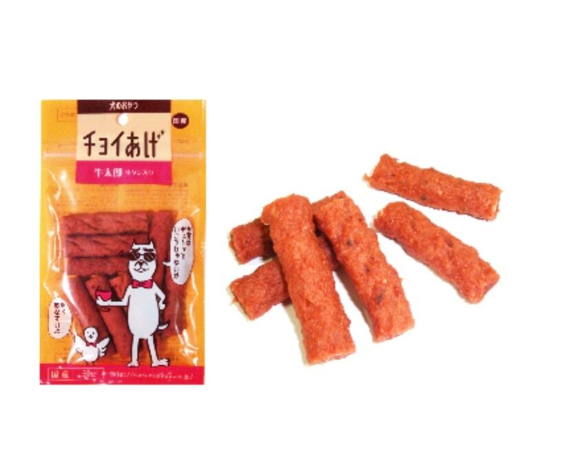 ●原材料●鶏肉、小麦粉、馬鈴薯澱粉、大豆たん白、グリセリン、プロピレングリコール、香料、保存料(ソルビン酸K)、酸化防止剤(エリソルビン酸Na)、着色料(黄4号、黄5号、赤102号、赤106号)